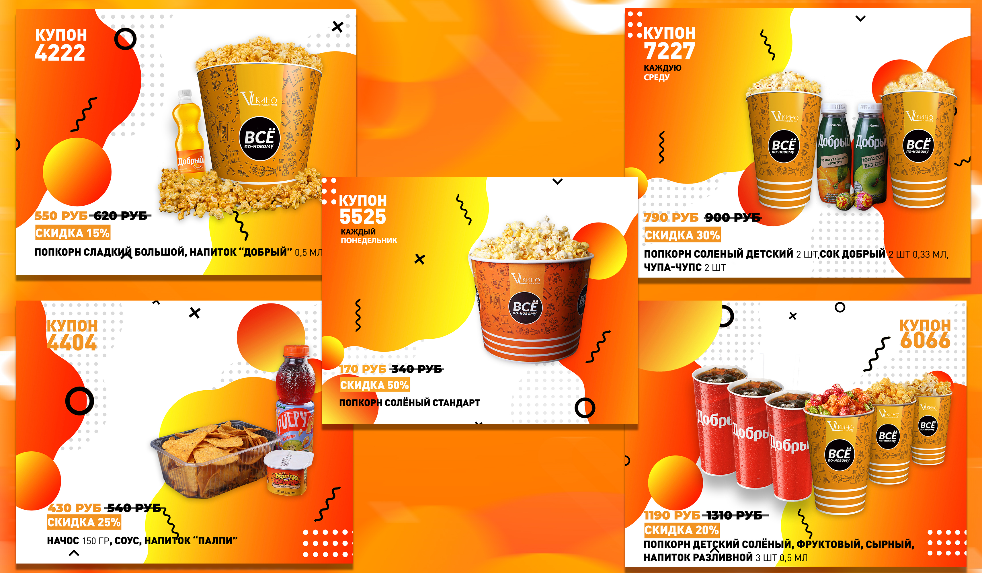 Сохраняй купоны, чтобы не потерять! Назови номер купона на кассе кинобара и получи его со скидкой!